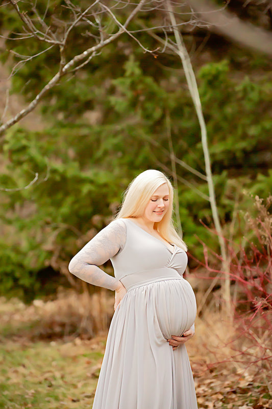 Light Gray Flowy Lace Sleeve Two Piece Gown